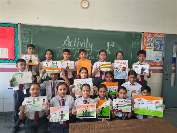 • Description : On 29th September 2025, our school organized Veer Gatha 5.0 to honour Gallantry Award winners. Grade VI students recited heartfelt poems, Grade VII created powerful posters, and Grade VIII wrote inspiring paragraphs. The event showcased students' creativity and patriotism, making it a memorable tribute to our national heroes.