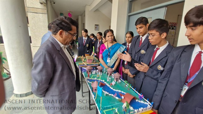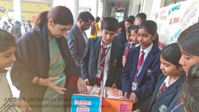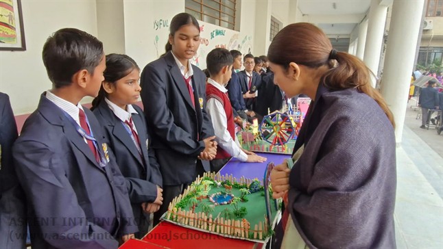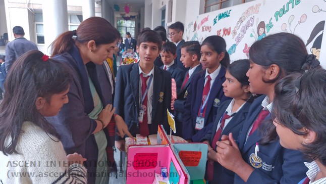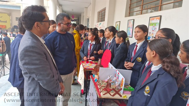 • Description : Ascent International School organized its annual exhibition, “Celebration of Learning,” on the 22nd, where students displayed their skills and calibre through subject-oriented models, presenting information with confidence and enthusiasm. The remarkable participation of parents in observing the children’s performance was highly appreciable. Teachers’ dedicated guidance and efforts were clearly reflected in the students’ impressive work. The exhibition was observed and appreciated by the Vice Chairman, Mr. S. K. Bansal; Principal, Ms. Naina Gupta; and Vice Principal, Ms. Preeti Chaudhary, who motivated both students and teachers with their encouraging words for the extraordinary efforts showcased.